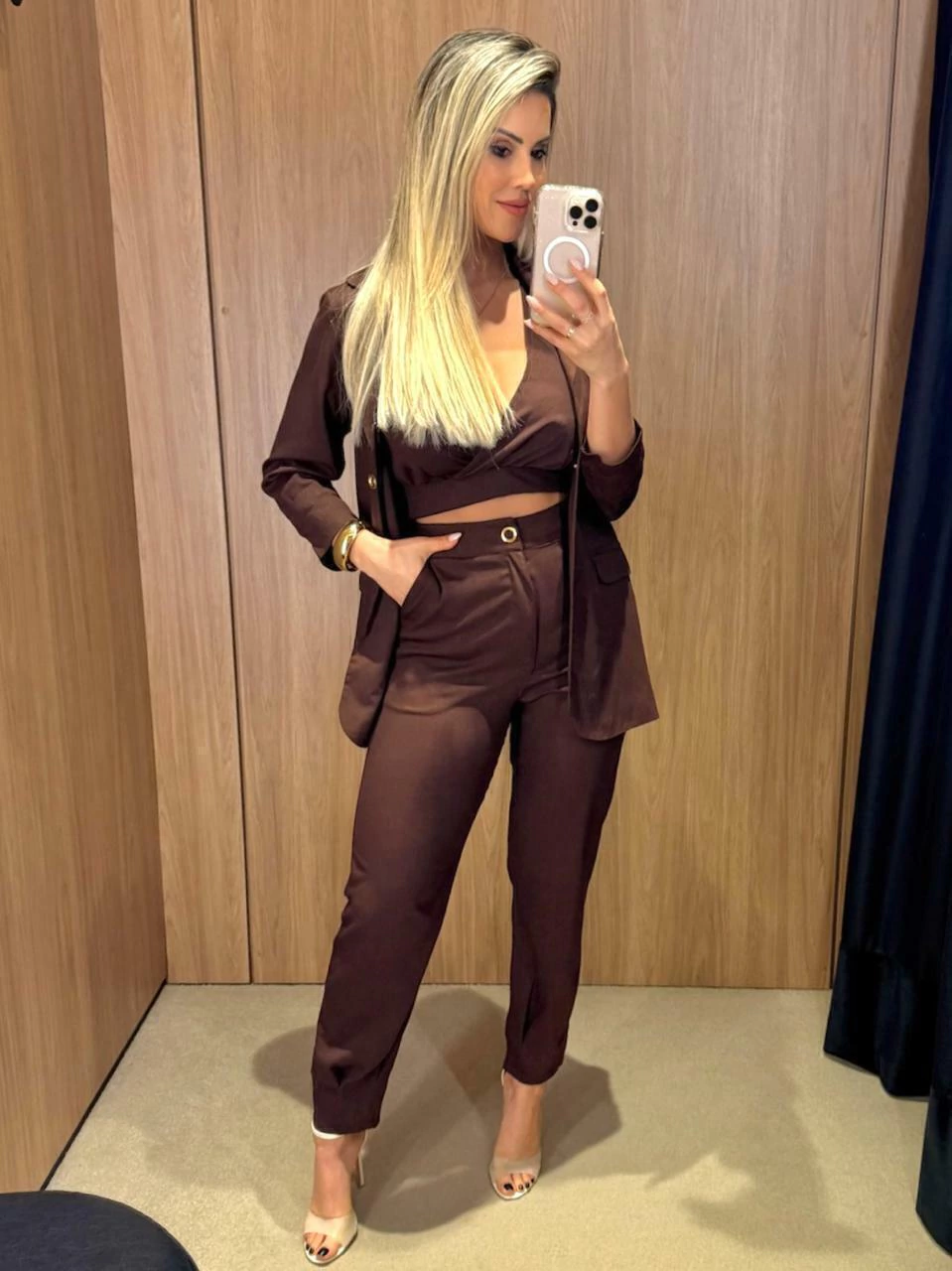 Calça que se modela no corpo e super elegante! Veste perfeitamente mulheres que possuem cintura mais fina e quadril maior, não necessitando ajustes de costura.