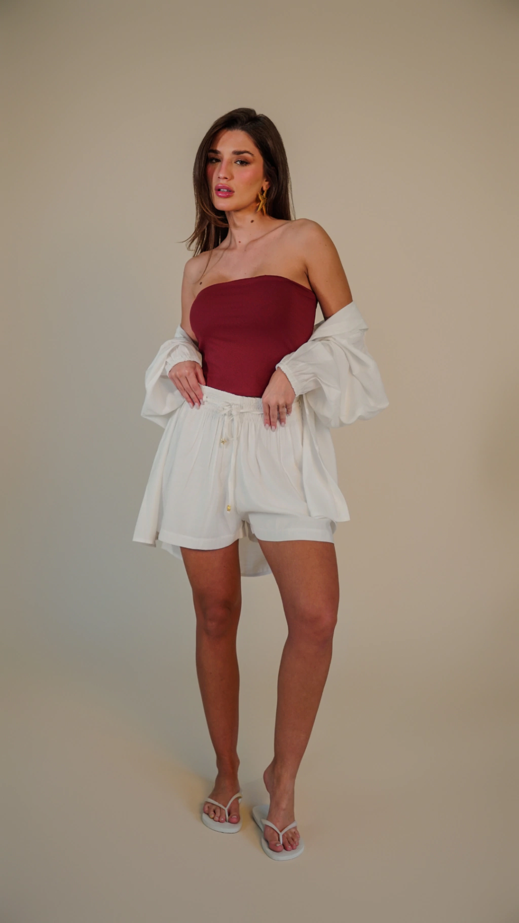 Cropped modelo tomara que caia, confeccionado no tecido poliamida;